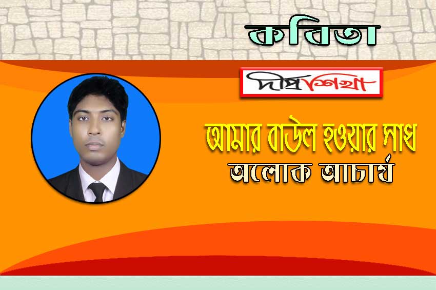 আমার বাউল হওয়ার সাধ অলোক আচার্য আমার বাউল হওয়ার সাধ জেগেছিল যেদিন ভরা জোৎস্নায় ডেকেছিল বান ভেসেছিল সবুজের বন, যমুনার কুল শহরের সব বাতি নিভেছিল অন্ধকারে ঢেকেছিল জোনাকির আলো মিশেছিল সেদিনের জোৎস্নার সাথে। আমার বাউল হওয়ার সাধ জেগেছিল সেদিন যেদিন ঘর ছেড়েছিলাম অচেনা পাখির ডাকে। সবাই জেগেছিল আমার বিস্তারিত পড়ুন